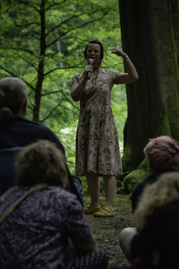 Zew opowieści poczułam spontanicznie w listopadzie 2024 roku. Wtedy po raz pierwszy publicznie opowiedziałam baśń. Debiutowałam na „Nocy 1001 Baśni” w Poznaniu. Od tego czasu miałam sporo przygód na bajarskiej ścieżce. Brałam udział we wspaniałych wydarzeniach i warsztatach. Opowiadałam w Radomiu, w Szamotułach, Poznaniu oraz izerskiej wiosce Świecie w której życie się angażuję. Kupiłam własną skrzyneczkę do teatrzyku Kamishibai i samodzielnie wykonałam plansze do baśni.